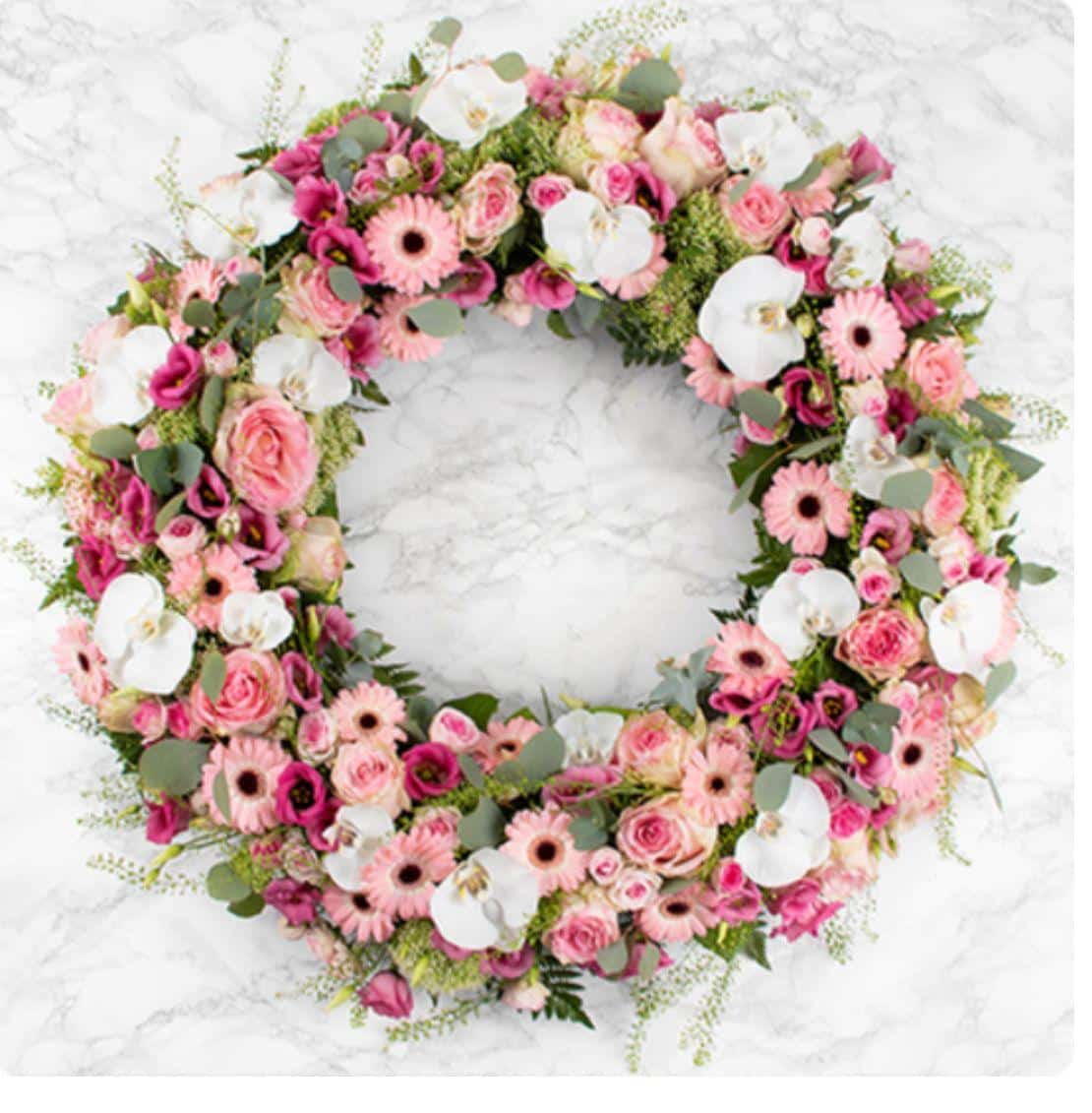 ¿Quieres expresar tus sentimientos con delicadeza y belleza natural? La Corona Floral Rosa Serenidad está elaborada con flores frescas en tonos suaves de rosa, blanco y verde. Combina distintas variedades florales con follaje natural, creando un diseño armonioso y elegante. Ideal para transmitir amor, gratitud o condolencias con serenidad y respeto. Disponible en tamaños de 70, 90 y 120 cm de diámetro.